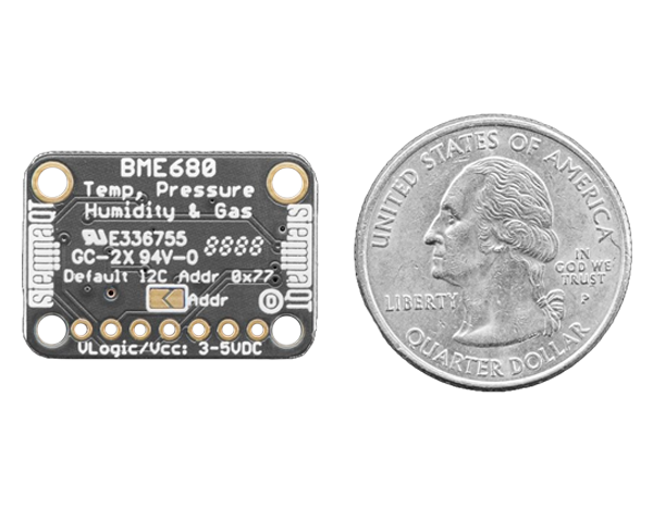 The BME680 precision sensor can measure humidity with ±3% accuracy, barometric pressure with ±1 hPa absolute accuracy, and temperature with ±1.0°C accuracy. Because pressure changes with altitude, and the pressure measurements are so good, you can also use it as an altimeter with ±1 meter or better accuracy!