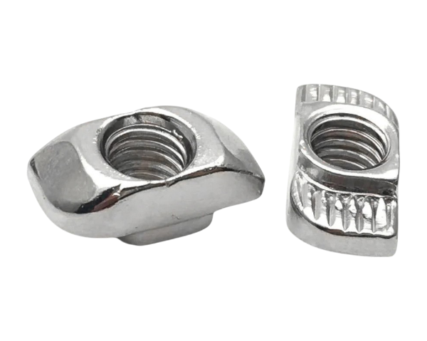 T-slot nuts are versatile fasteners designed to slide into T-slots on framing systems, providing a secure connection point for bolts, screws, and other hardware. They are commonly used in modular assembly setups, offering easy adjustment and reconfiguration while ensuring a strong, stable hold.